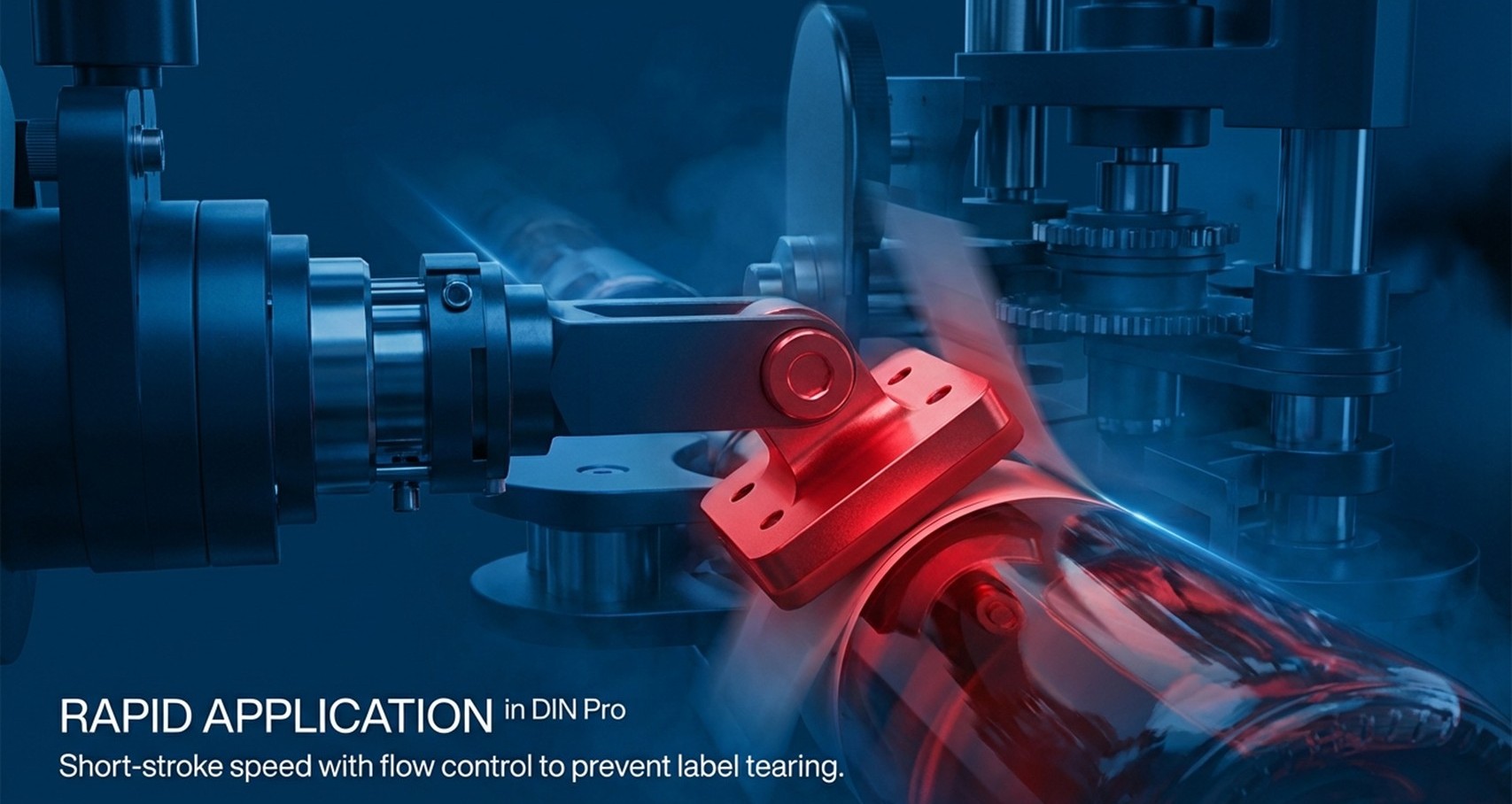 Pneumatic cylinders actuate label dispensing mechanisms, pressing labels onto containers as they pass on conveyor lines. Short-stroke compact cylinders provide the rapid extend-retract motion required for high-speed labelling, whilst precision flow control valves regulate approach speed to prevent label damage or misalignment.